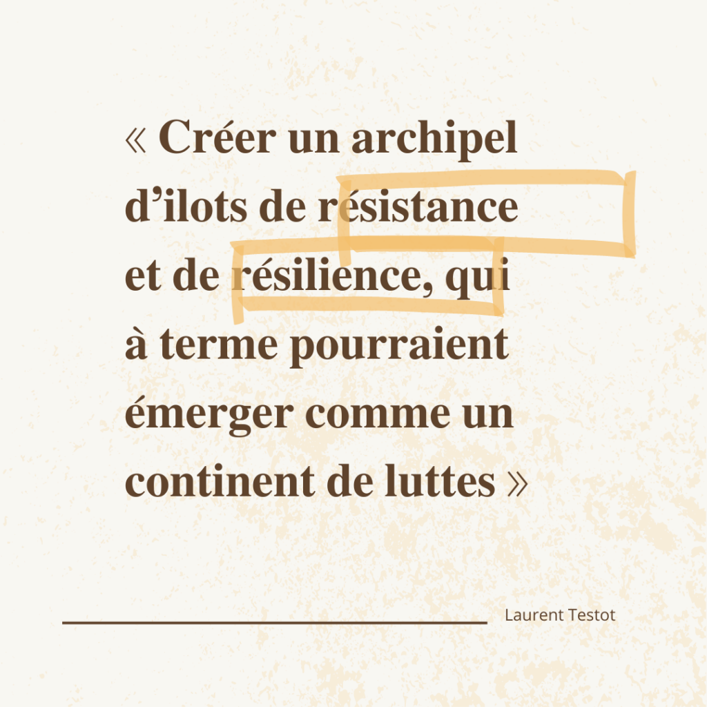 « 𝐶𝑟𝑒́𝑒𝑟 𝑢𝑛 𝑎𝑟𝑐ℎ𝑖𝑝𝑒𝑙 𝑑’𝑖̂𝑙𝑜𝑡𝑠 𝑑𝑒 𝑟𝑒́𝑠𝑖𝑠𝑡𝑎𝑛𝑐𝑒 𝑒𝑡 𝑑𝑒 𝑟𝑒́𝑠𝑖𝑙𝑖𝑒𝑛𝑐𝑒, 𝑞𝑢𝑖, 𝑎̀ 𝑡𝑒𝑟𝑚𝑒, 𝑝𝑜𝑢𝑟𝑟𝑎𝑖𝑡 𝑒́𝑚𝑒𝑟𝑔𝑒𝑟 𝑐𝑜𝑚𝑚𝑒 𝑢𝑛 𝑐𝑜𝑛𝑡𝑖𝑛𝑒𝑛𝑡 𝑑𝑒 𝑙𝑢𝑡𝑡𝑒𝑠. »