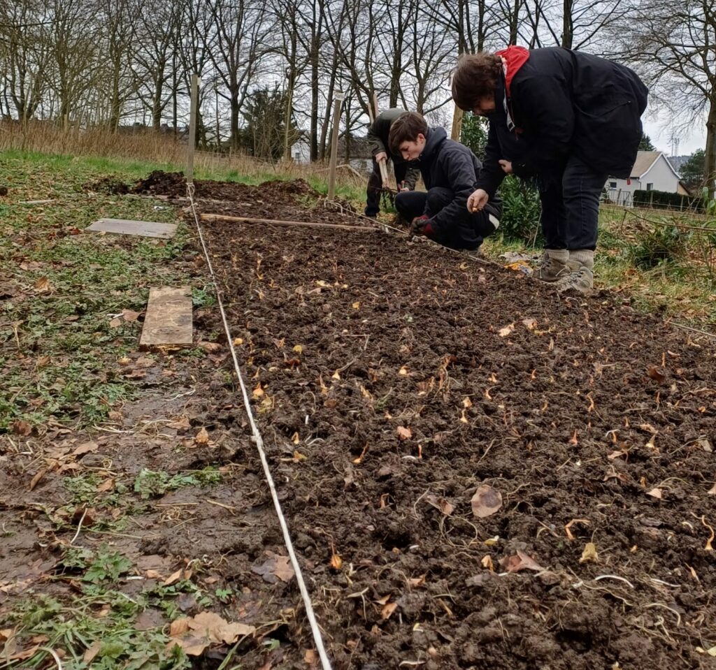 Les premières bandes de culture accueillent également déjà de l’ail, des oignons, des fraisiers ainsi que des fèves des marais.